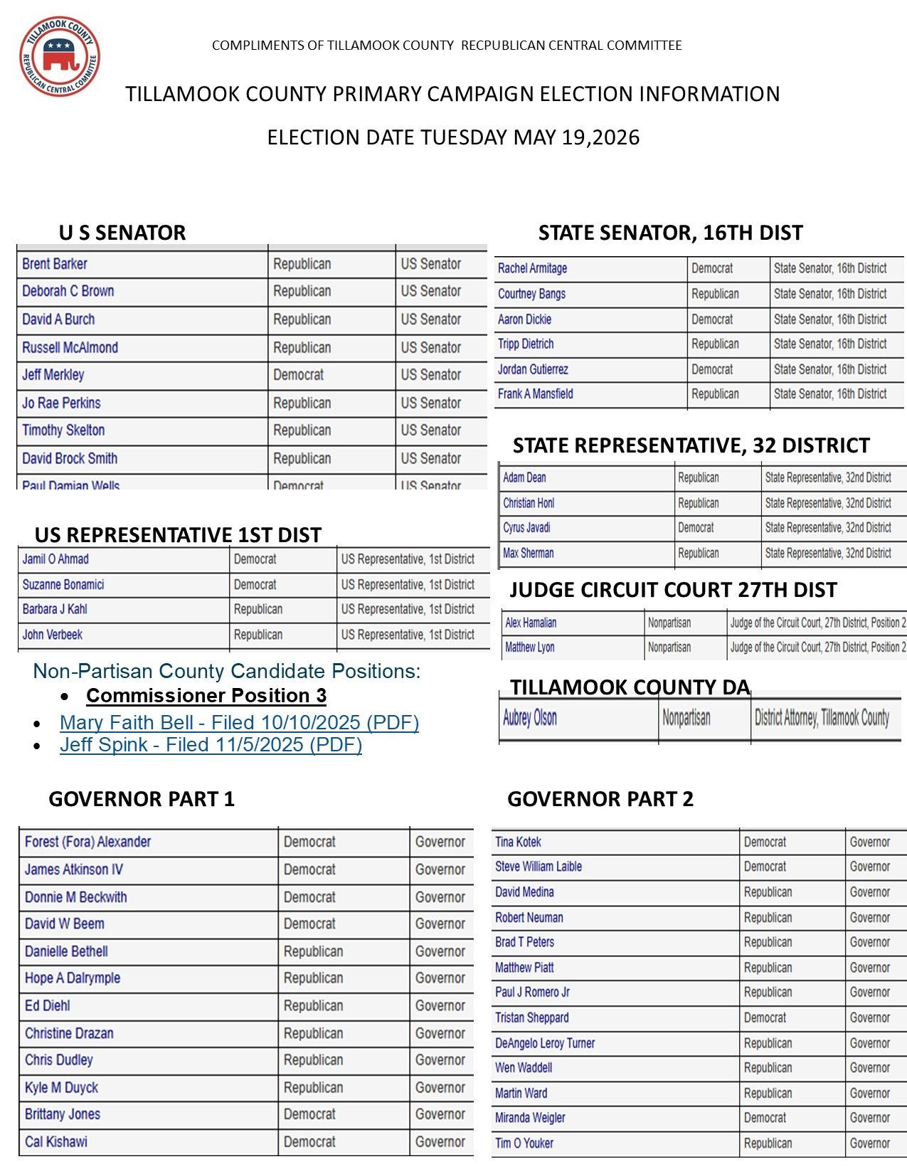 Paid For By Tillamook County Republican Central Committee